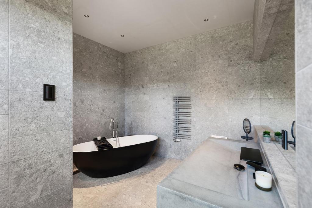 The accommodations are modern and thoughtfully designed, often featuring clean architectural lines, natural materials, and functional open-plan layouts. Living areas are spacious enough for groups or families, with fully equipped kitchens and comfortable communal spaces that make extended stays practical and enjoyable.