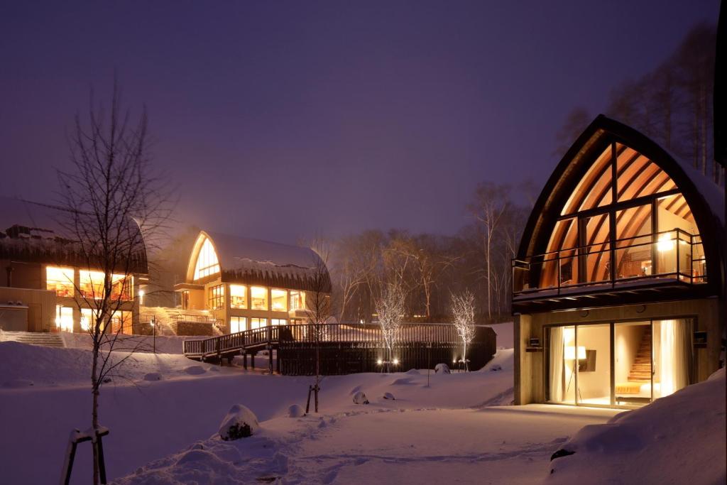 The architecture blends modern alpine aesthetics with natural materials such as wood and stone, while large windows frame views of forests and Mount Yotei. Rooms and suites are notably spacious by Japanese standards, many featuring balconies and deep soaking tubs.